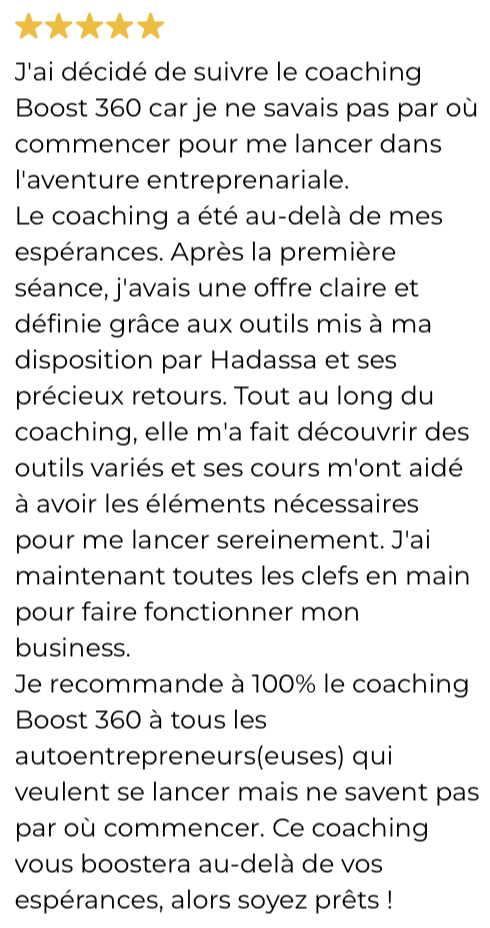 BOOST 360 est conçu aussi bien pour ceux et celles qui veulent se lancer que pour les entrepreneur(e)s déjà lancé(e)s. Le programme vous aidera à poser des bases solides et à éviter les erreurs courantes. Si vous êtes déjà en activité mais que vous manquez de clarté sur votre stratégie, votre communication ou que vous stagnez, il vous apportera une méthode concrète pour vous rendre visible et attirer des clients plus efficacement.